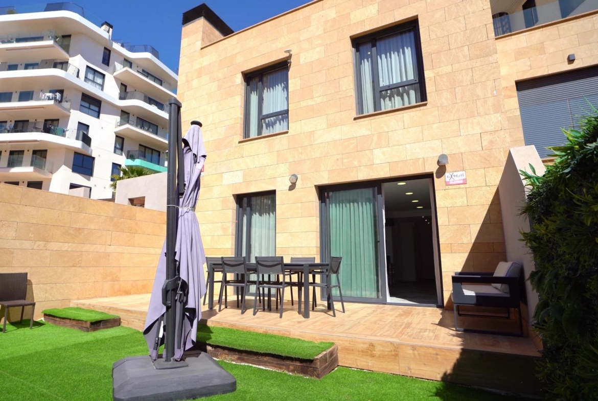 Dúplex con vistas al mar en venta a un precio inferior al de la promotora.~~Calle Edeta, Playa del Torres, Villajoyosa (Costa Blanca Norte)~~VISTAS AL MAR~~Precio: 550.000 €~Precio anterior: 650.000 €~Ahorro: 100.000 € (-15%)~Precio por m²: 3.873 €~~Una oportunidad única en primera línea de mar, a solo 50 metros de la playa. Construida en 2020, esta propiedad se encuentra en un moderno complejo de lujo y lista para entrar a vivir.~~Características principales:~~Superficie total: 142 m²~Superficie habitable: 95 m²~Terreno: 44 m²~4 dormitorios~3 baños~1 salón~1 cocina~2 terrazas~1 planta (edificio de 8 plantas)~~Ventajas de la propiedad:~~Este dúplex presenta un diseño moderno y de alta tecnología con una distribución bien pensada y máxima luz natural. Sus ventanales panorámicos ofrecen vistas al mar y a la montaña. La distribución del espacio es eficiente: la ausencia de tabiques innecesarios realza la sensación de volumen y luminosidad.~~Acabados y equipamiento de alta calidad:~~Azulejos cerámicos~Suelo radiante~Sistema de aerotermia (bomba de calor)~Aire acondicionado y calefacción~Ventanas con doble acristalamiento~Persianas eléctricas~Puerta blindada~Armarios empotrados~Cocina amueblada~Muebles de baño~Sistema de domótica~Internet~Garaje subterráneo y trastero~Sistema de alarma~Infraestructura del complejo~Terreno cerrado y vigilado con infraestructura de nivel club:~Dos piscinas exteriores~Piscinas cubiertas climatizadas con jacuzzis~Zona de spa con sauna y hammam~Gimnasio y fitness al aire libre~Zona de juegos infantiles~Jardines paisajísticos~Zona de yoga y club social~Conserjería~El complejo se integra armoniosamente con la zona verde y el paseo marítimo, creando un espacio privado junto al mar.~~Ubicación~~Playa del Torres es una prestigiosa zona entre Villajoyosa y Benidorm. A 3 minutos en coche de Benidorm~La playa, los restaurantes y las zonas de ocio están a poca distancia a pie~En las inmediaciones hay un club náutico, campos de golf y centros médicos~Fácil acceso a la autopista~Una solución ideal tanto para una vida privada junto al mar como para una inversión de alta liquidez.~~La propiedad se ofrece por debajo del precio de venta del promotor: una oportunidad única de adquirir una propiedad premium frente al mar a un precio reducido.~~Toda la información proporcionada es solo para fines informativos y no constituye una oferta contractual. Los términos, especificaciones y precios están sujetos a cambios sin previo aviso.~